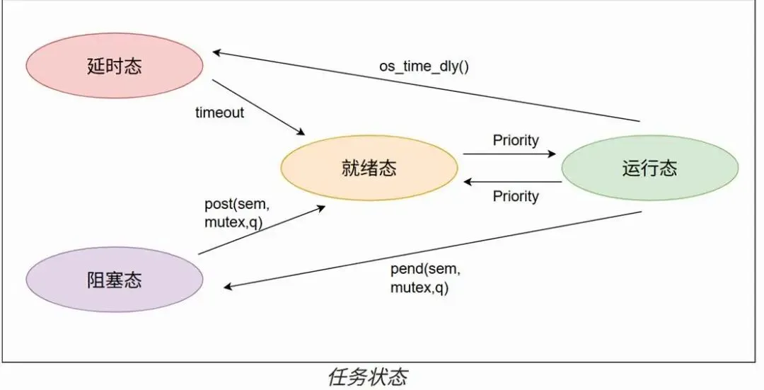 说到操作系统,那首先不得不提到“任务”,通常也称之为线程 ,是操作系统调度的最小单位,一般操作系统任务状态流转如下图。