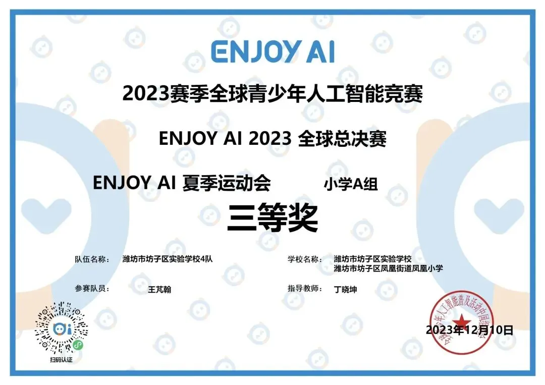 - ENJOY AI全球总决赛舞台,面对全球顶尖队伍沉着调试代码、优化机器人策略,最终斩获全球三等奖,尽显中国少年科创实力。