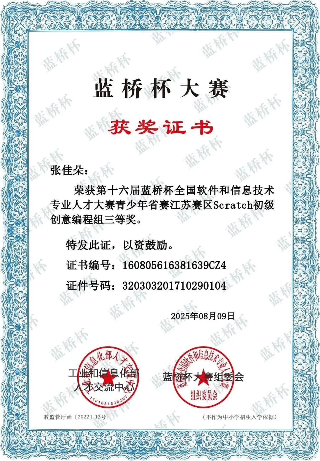 蓝桥杯Scratch小低组江苏省三等奖