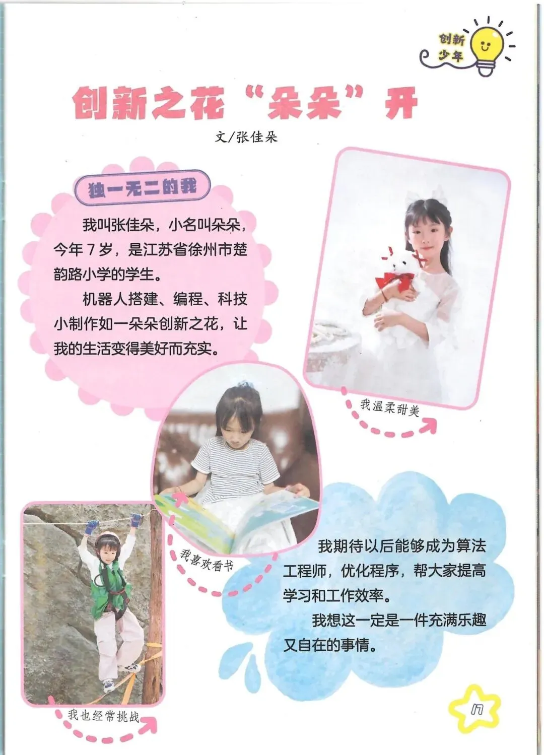 2025年12月,中国科技核心期刊《发明与创新》在“创新少年”栏目中,刊登了朵朵的故事。