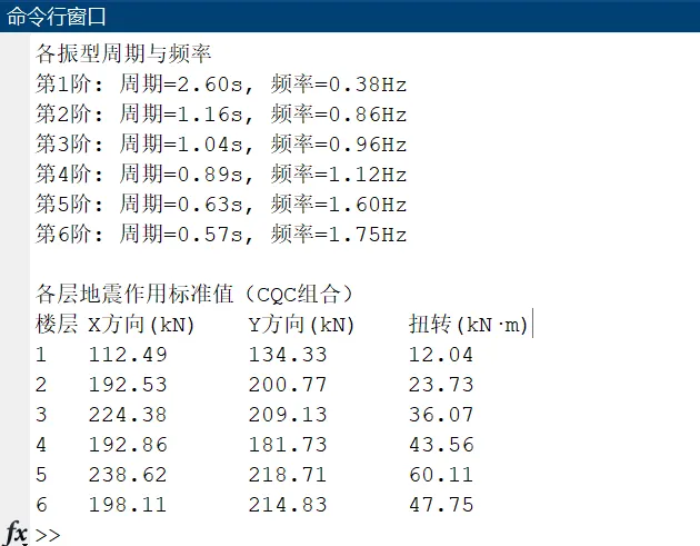 %% 考虑扭转耦联的振型分解反应谱法,单位制为(N,m,kg,s)clear;clc;close all;%% 1输入%% 1.1 输入结构信息% 每层质量(kg)m = 1e7 * [1, 1.1, 1.2, 1.1, 1.3, 0.9]; % 每层转动惯量(kg·m²)J = 1e6 * [1, 1.1, 1.2, 1.1, 1.3, 0.9];% 每层X方向刚度(N/m)k_xx = 1e9 * [1.1, 1.2, 1.3, 1.1, 1.2, 0.85]; % 每层Y方向刚度(N/m)k_yy = 1e9 * [1.0, 1.1, 1.2, 1.0, 1.1, 0.8]; % 每层扭转刚度(N·m/rad)k_xy = 1e9 * [0.5, 0.6, 0.7, 0.6, 0.7, 0.4]; % 每层高度(m)h = [3.3, 3.0, 3.0, 3.0, 3.0, 2.8];% 每层X方向偏心距(m)e_x = [0.1, 0.15, 0.15, 0.15, 0.15, 0.1];% 每层Y方向偏心距(m)e_y = [0.1, 0.15, 0.15, 0.15, 0.15, 0.1];% 层数n = length(m);%% 1.2 输入地震相关信息% 特征周期(s)Tg = 0.40;% 地震影响系数最大值a_max = 0.08;% 阻尼比znb = 0.05;%% 2计算%% 2.1 求解质量矩阵和刚度矩阵% 质量矩阵M = zeros(3*n, 3*n);for i = 1:n M(3*i-2, 3*i-2) = m(i); M(3*i-1, 3*i-1) = m(i); M(3*i, 3*i) = J(i); end% 刚度矩阵K = zeros(3*n, 3*n);for i = 1:n if i == 1 K(1,1) = k_xx(1) + k_xx(2); K(1,4) = -k_xx(2); elseif i == n K(3*n-2, 3*n-5) = -k_xx(n); K(3*n-2, 3*n-2) = k_xx(n); else K(3*i-2, 3*i-5) = -k_xx(i); K(3*i-2, 3*i-2) = k_xx(i) + k_xx(i+1); K(3*i-2, 3*i+1) = -k_xx(i+1); endendfor i = 1:n if i == 1 K(2,2) = k_yy(1) + k_yy(2); K(2,5) = -k_yy(2); elseif i == n K(3*n-1, 3*n-4) = -k_yy(n); K(3*n-1, 3*n-1) = k_yy(n); else K(3*i-1, 3*i-4) = -k_yy(i); K(3*i-1, 3*i-1) = k_yy(i) + k_yy(i+1); K(3*i-1, 3*i+2) = -k_yy(i+1); endendfor i = 1:n k_xx_i = k_xx(i); k_yy_i = k_yy(i); k_xy_i = k_xy(i); e_x_i = e_x(i); e_y_i = e_y(i); if i == 1 K(3,3) = k_xy(1) + k_xy(2) + k_xx_i*e_y_i^2 + k_yy_i*e_x_i^2; K(3,6) = -k_xy(2); elseif i == n K(3*n, 3*n-3) = -k_xy(n); K(3*n, 3*n) = k_xy(n) + k_xx_i*e_y_i^2 + k_yy_i*e_x_i^2; else K(3*i, 3*i-3) = -k_xy(i); K(3*i, 3*i) = k_xy(i) + k_xy(i+1) + k_xx_i*e_y_i^2 + k_yy_i*e_x_i^2; K(3*i, 3*i+3) = -k_xy(i+1); end K(3*i-2, 3*i) = -k_xx_i*e_y_i; K(3*i, 3*i-2) = -k_xx_i*e_y_i; K(3*i-1, 3*i) = k_yy_i*e_x_i; K(3*i, 3*i-1) = k_yy_i*e_x_i;end%% 2.2 求解特征值和特征向量[V, D] = eig(K, M); % 得到圆频率pinlv = sqrt(abs(diag(D))); % 得到周期T = 2*pi./pinlv;% 按周期从大到小排序[T, index] = sort(T, 'descend'); % 根据周期,排序频率和振型pinlv = pinlv(index);V = V(:, index);% 取前6个振型num_modes = min(6, length(T));T = T(1:num_modes);pinlv = pinlv(1:num_modes);V = V(:, 1:num_modes); %% 2.3计算各振型地震影响系数% aa:地震影响系数列矩阵,《高规》4.3.8aa = zeros(num_modes, 1);for i = 1:num_modes if T(i) < 0.1 aa(i) = (0.45 + 5.5 * T(i)) * a_max; elseif T(i) <= Tg aa(i) = a_max; elseif T(i) <= 5*Tg aa(i) = (Tg / T(i))^0.9 * a_max; else aa(i) = (0.2^0.9 - 0.02*(T(i) - 5*Tg)) * a_max; endend%% 2.4 计算振型参与系数% GM:振型参与系数GM = zeros(3, num_modes);for i = 1:num_modes V_x = V(1:3:end, i); % x方向振型 V_y = V(2:3:end, i); % y方向振型 V_theta = V(3:3:end, i); % 扭转振型 % 计算各方向振型参与系数 GM(1, i) = (V_x' * m(:)) / (V(:, i)' * M * V(:, i)); GM(2, i) = (V_y' * m(:)) / (V(:, i)' * M * V(:, i)); GM(3, i) = (V_theta' * J(:)) / (V(:, i)' * M * V(:, i));end%% 2.5 计算CQC耦联系数function rho = calculate_cqc_coefficients(T, znb) n_modes = length(T); rho = zeros(n_modes, n_modes); for i = 1:n_modes for j = 1:n_modes if T(i) == 0 || T(j) == 0 beta_ij = 0; else beta_ij = T(j)/T(i); end rho(i,j) = (8*znb^2*(1+beta_ij)*beta_ij^(1.5)) / ... ((1-beta_ij^2)^2 + 4*znb^2*beta_ij*(1+beta_ij)^2); end endend%% 2.6各振型地震作用标准值计算% F:各振型各层地震作用标准值矩阵F = zeros(3*n, num_modes); for i = 1:num_modes % 计算各方向地震作用 F_x = aa(i) * GM(1, i) * V(1:3:end, i) .* m(:); F_y = aa(i) * GM(2, i) * V(2:3:end, i) .* m(:); F_theta = aa(i) * GM(3, i) * V(3:3:end, i) .* J(:); % 组合地震作用矩阵 F(1:3:end, i) = F_x; F(2:3:end, i) = F_y; F(3:3:end, i) = F_theta;end%% 2.7 CQC组合计算function response = cqc_combination(F, rho) n_modes = size(F, 2); n_points = size(F, 1); response = zeros(n_points, 1); for k = 1:n_points temp = 0; for i = 1:n_modes for j = 1:n_modes temp = temp + F(k,i) * rho(i,j) * F(k,j); end end response(k) = sqrt(temp); endend% 计算CQC耦联系数rho = calculate_cqc_coefficients(T, znb);% 采用CQC组合来计算每层地震作用标准值V_CQC_x = cqc_combination(F(1:3:end, :), rho);V_CQC_y = cqc_combination(F(2:3:end, :), rho);V_CQC_theta = cqc_combination(F(3:3:end, :), rho);%% 3输出%% 3.1周期与频率fprintf('各振型周期与频率\n');for i = 1:num_modes fprintf('第%d阶: 周期=%.2fs, 频率=%.2fHz\n', i, T(i), pinlv(i)/(2*pi));end%% 3.2地震作用标准值fprintf('\n各层地震作用标准值(CQC组合)\n');fprintf('楼层\tX方向(kN)\tY方向(kN)\t扭转(kN·m)\n');for i = 1:n fprintf('%d\t%.2f\t\t%.2f\t\t%.2f\n', i, V_CQC_x(i)/1000, ... V_CQC_y(i)/1000, V_CQC_theta(i)/1000);end
