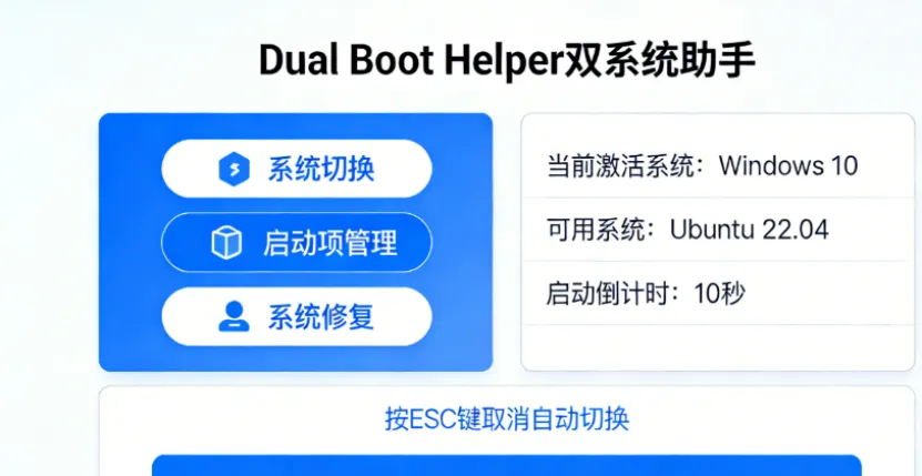 - Dual Boot Helper(双系统助手):第三方专用工具,可一键配置双系统驱动隔离、优化启动项,自动适配Windows与Linux的GPU驱动参数,避免手动修改配置文件,适合新手,支持Windows 11+Ubuntu全版本。
