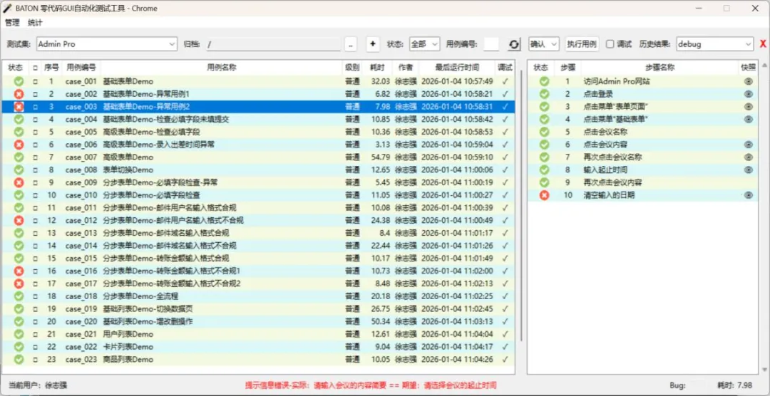 回想文章开头的困境——定位失效、脚本脆弱、维护繁重,Baton 用对象化元素管理给出了系统性解法:定位一次定义、测试集内全用例可复用;页面改版只改对象,不改用例;业务人员也能拖拽生成测试流程。