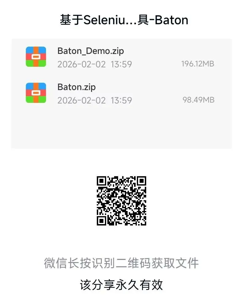 如果你也希望让 Selenium 自动化摆脱脆弱与高维护的桎梏,不妨下载包含 Demo 与操作手册的 Baton,亲身体验这场从“改脚本”到“改对象”的变革。让自动化测试,真正成为推动产品质量与交付速度的加速器。