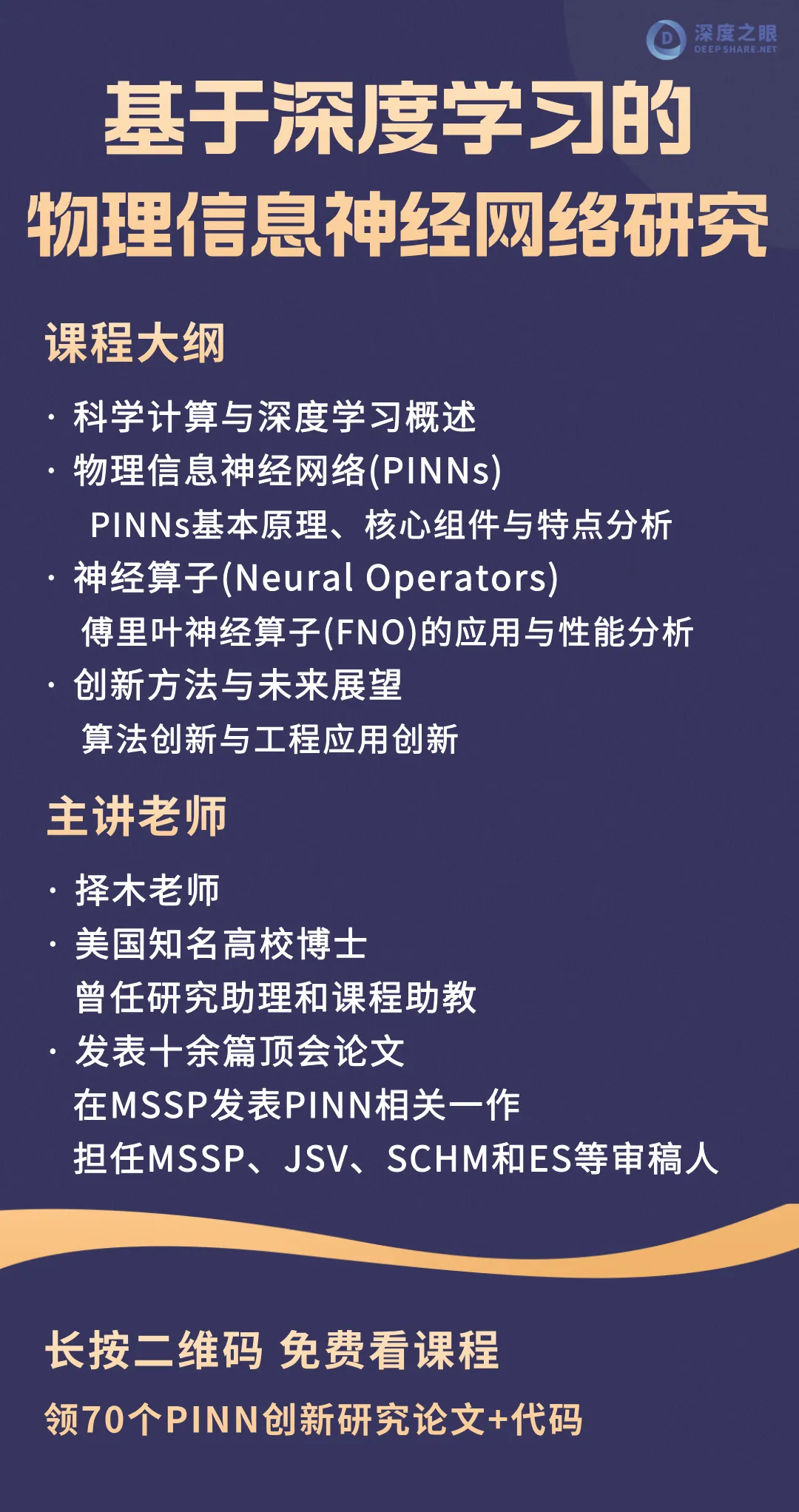 这里也分享一个完全免费的PINN入门课。由美国知名高校博士择木老师主讲。择木老师主要从事物理信息神经网络、无损检测和结构模态识别等前沿研究。