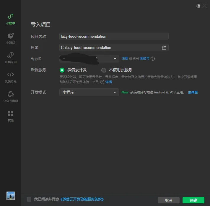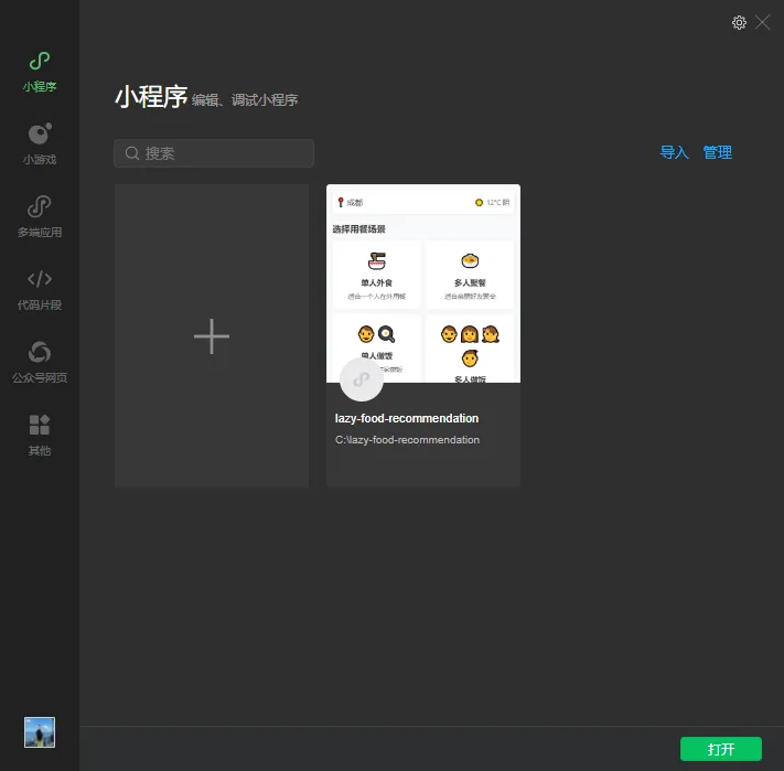 将生成的代码按照AiPy的要求复制粘贴到新的文件夹下,然后下载微信开发者工具,导入新建的文件