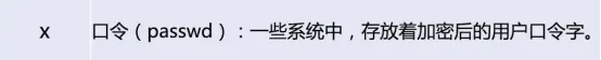 ② 密码占位符:通常显示为x。由于/etc/passwd文件对所有用户可读,出于安全考虑,加密后的实际密码已转移至仅root可读的/etc/shadow文件中。此处x仅为指示符。