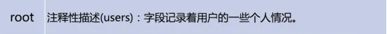 ① 注释性描述:这个字段并没有什么实际的用途,在许多Linux系统中,这个字段存放的是一段任意的注释性描述文字,用作finger命令的输出。