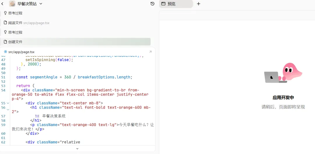 输入要求后,就进入AI编程页面了,会自动生成代码,只需要等待就好。