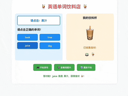 学习往往被认为是枯燥,但这个作品用创意将背单词变成了一场甜蜜的经营游戏,作者将枯燥的字母变成了制作美味饮料的新鲜食材,还像一位贴心的老师准备了错题本,他用鲜艳可爱的色彩和充满童趣的交互,证明了学习完全可以是快乐的,成为全场最受欢迎的一幕。