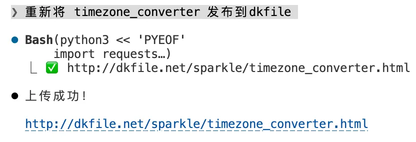 4. 优化了发布到 dkfile 的流程,之前需要打开 dkfile 页面,登录,上传,等待上传... 非常繁琐,现在也是一句话的事: