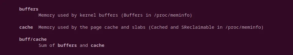 咱们看一下系统中是怎么解释 Buffer 和 Cache的吧!要检查系统内存使用情况,您想到的第一个命令可能是 free ,例如:上面截图中,显示结果包括了物理内存 Mem 和 Swap 的具体使用情况(如总内存、已用内存、缓存、可用内存等)。缓存是 Buffer 和 Cache 两部分的总和。让我们看一下 free 的手册页中的 Buffer 和 Cache 定义:free 命令的源数据实际上存储在 proc/meminfo 文件中。/proc 文件系统也是许多性能工具的最终数据源。在 man proc 中,Buffers 和 Cached 的定义如下:看完上面的解释,有小伙伴们可能认为 Buffer 只是用于将数据写入磁盘的缓存,Cache 只是用于从文件中读取数据的缓存。但事实上,Buffer 也可以用于读取, Cache 也可以用于写入。
