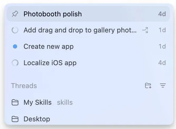🧠 "Tell me about this project"🎮 "Build a classic Snake game in this repo"🔍 "Find and fix bugs with minimal, high-confidence changes"Codex App 允许在单个窗口中管理多个项目,每个项目可以运行多个并行的线程。