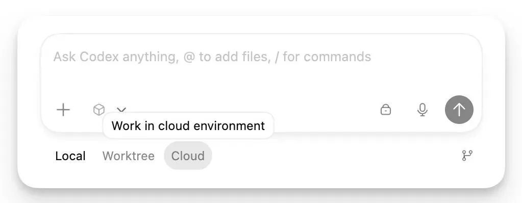 创建新线程时选择 Local、Worktree 或 Cloud 模式