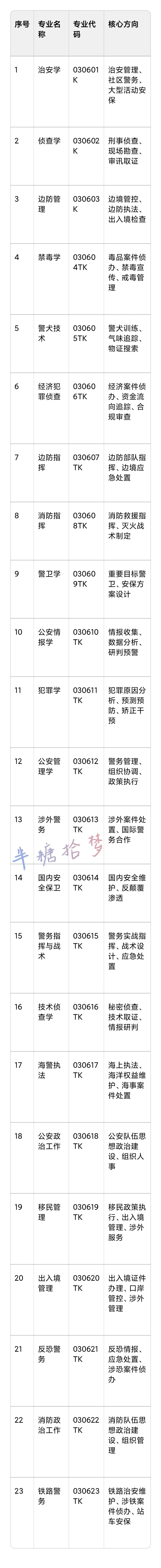 - 新兴需求:网络犯罪、跨境犯罪、数据安全等领域,技术+法律复合人才更吃香。以上是公安学类专业代码清单,入警必备点赞收藏以免用时找不到~
