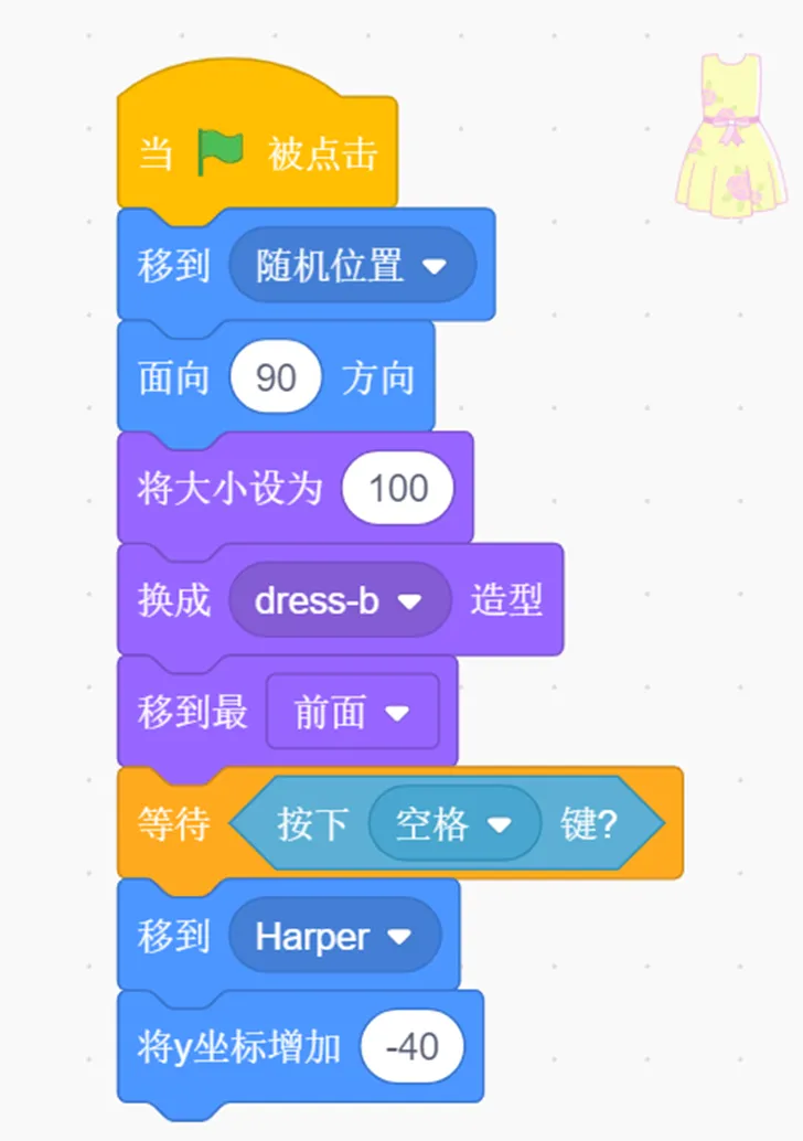(7)按下空格键后,Dress,移动到Harper,y坐标减少40。(4分)