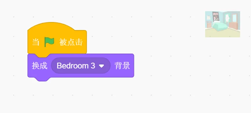 (1)点击绿旗,背景换成Bedroom 3。(2分)