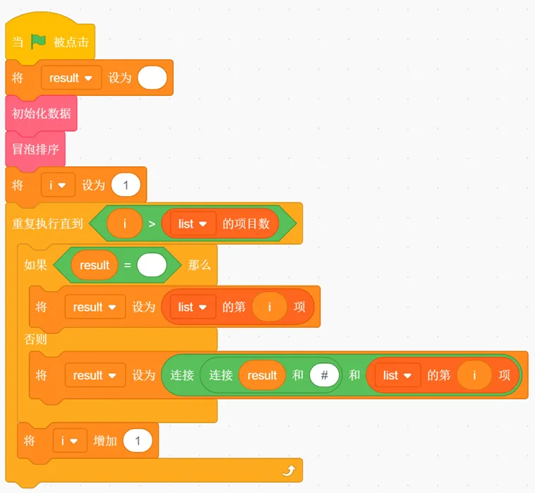 新建变量“result”,用于存储排序后,每个元素在原始数列中的位置,中间用#连接。