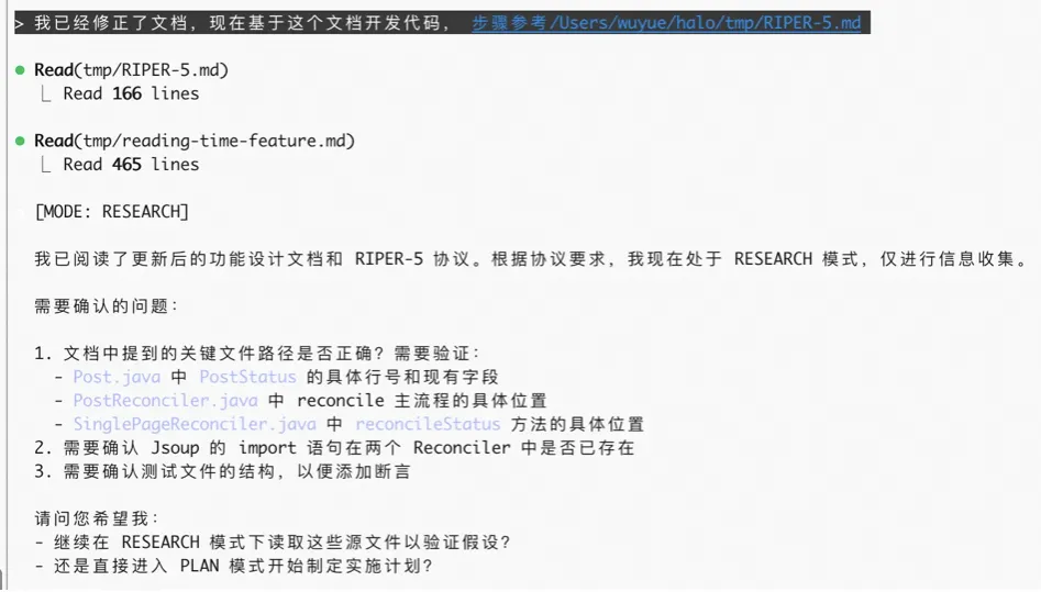 这是本指南推荐的标准作业流程。它的核心在于:严禁在没有文档支撑的情况下直接修改代码。让大模型完全基于文档,以文档为唯一核心,这样程序员只需要控制文档,就可以约束大模型,就可以控制代码的质量,保证下限。