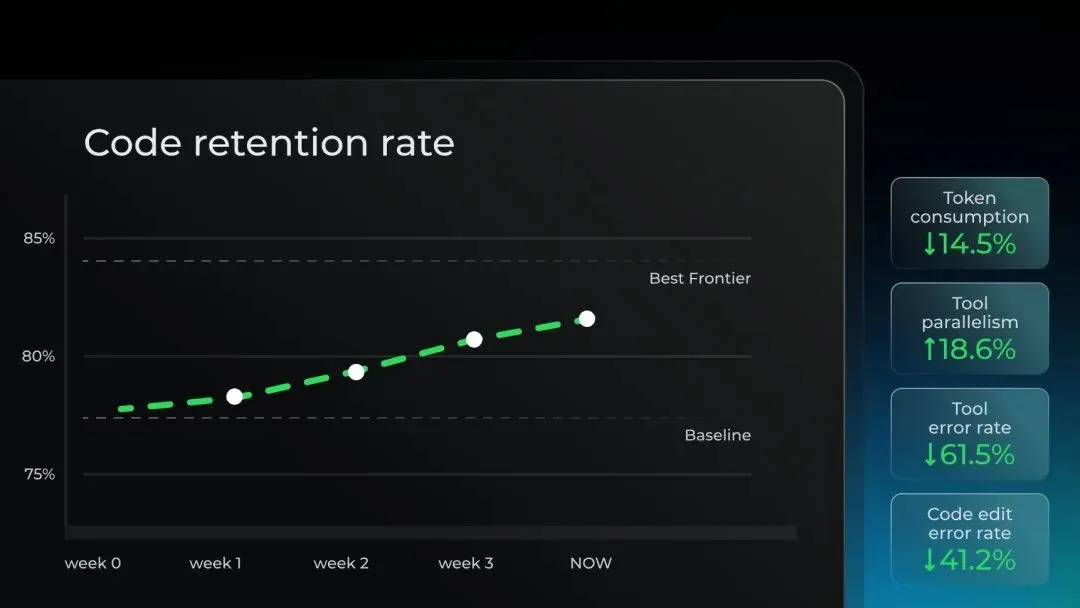 不仅如此,升级后的Qoder在线上真实环境中的表现也堪称惊艳:代码留存率提升了3.85%,工具异常率直接下降了61.5%。这意味着AI写出来的代码更靠谱了,你修Bug的时间变少了。