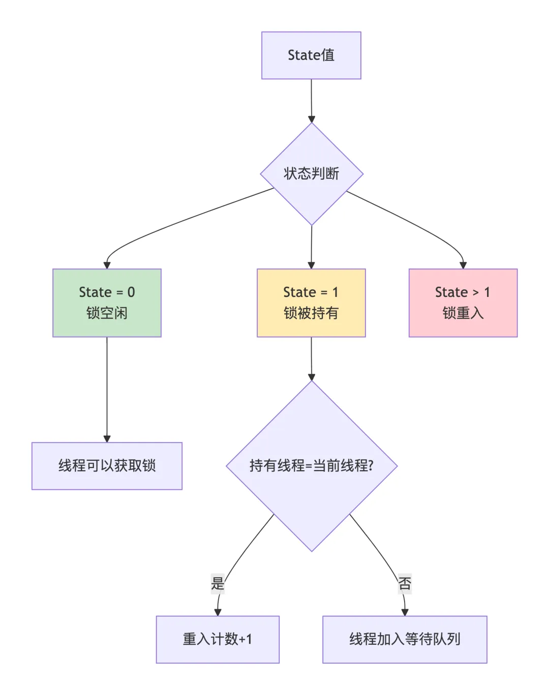 - 在ReentrantLock中:state=0表示锁空闲,state>0表示锁被持有,可重入