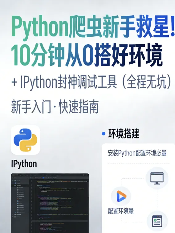 IPython 是 Jupyter 的底层内核,学会 IPython 后,可无缝使用 Jupyter(网页版交互式开发工具),更适合编写爬虫笔记、分步调试。安装命令: