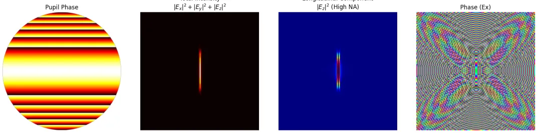这些方法在构造艾里光束时确实是有效的,但它们也存在明显的局限性:空间域调制更多影响的是“光束长什么样”,而不是“光束往哪儿走、怎么走”。从傅里叶光学的角度来看,光束的传播行为本质上由其波矢分布决定,而波矢信息正是隐藏在频域之中的。这也意味着,如果希望实现:
