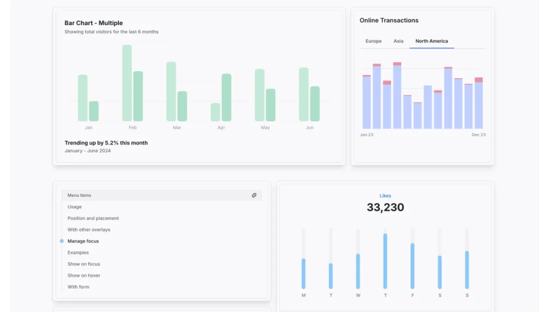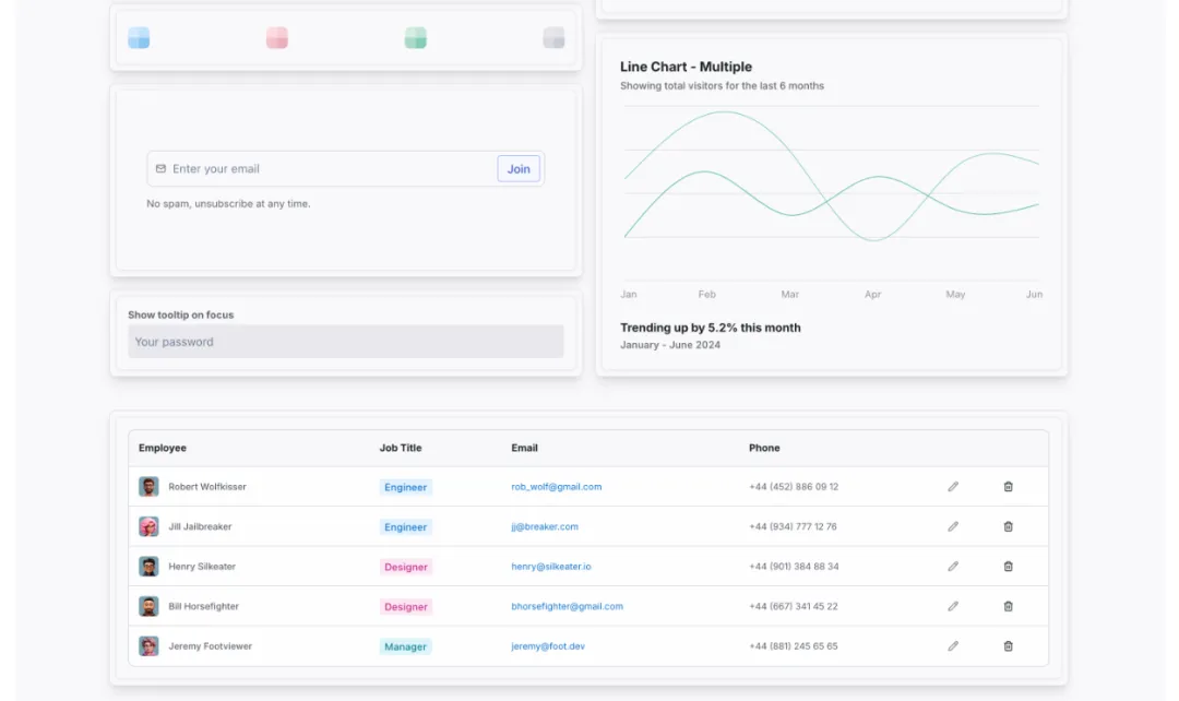 - • 设计优雅:组件风格统一、响应式,极具视觉冲击力。