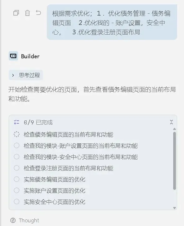 AI引导我进行系统测试,并提供优化建议。对于样式问题,它直接给出修复后的CSS代码;对于逻辑漏洞,它补充上边界情况的判断。