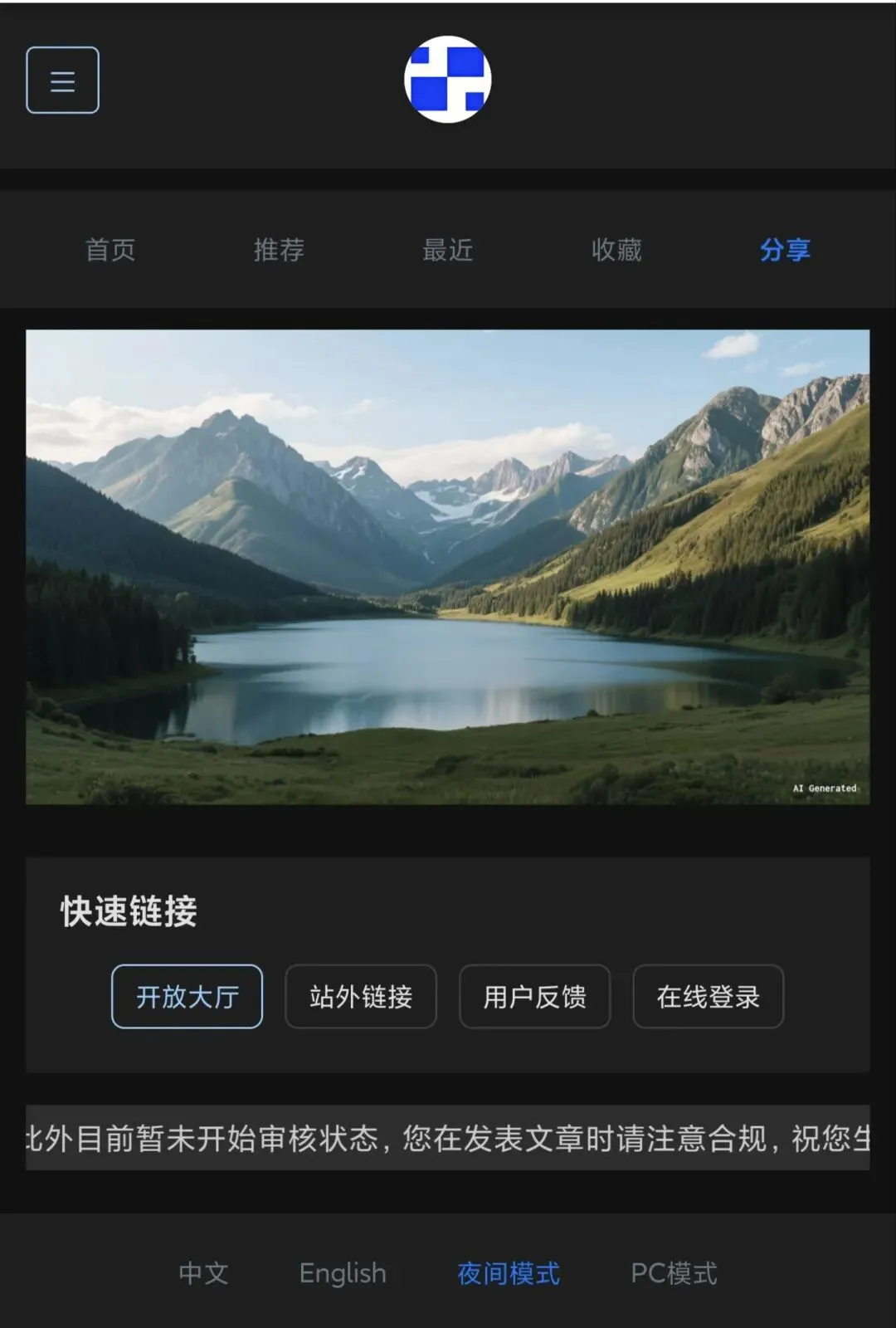 3、支持中英文显示、白天黑夜模式的切换以及移动端和PC端的页面显示切换,添加的文章目前暂未支持中英文切换功能。(见下图)