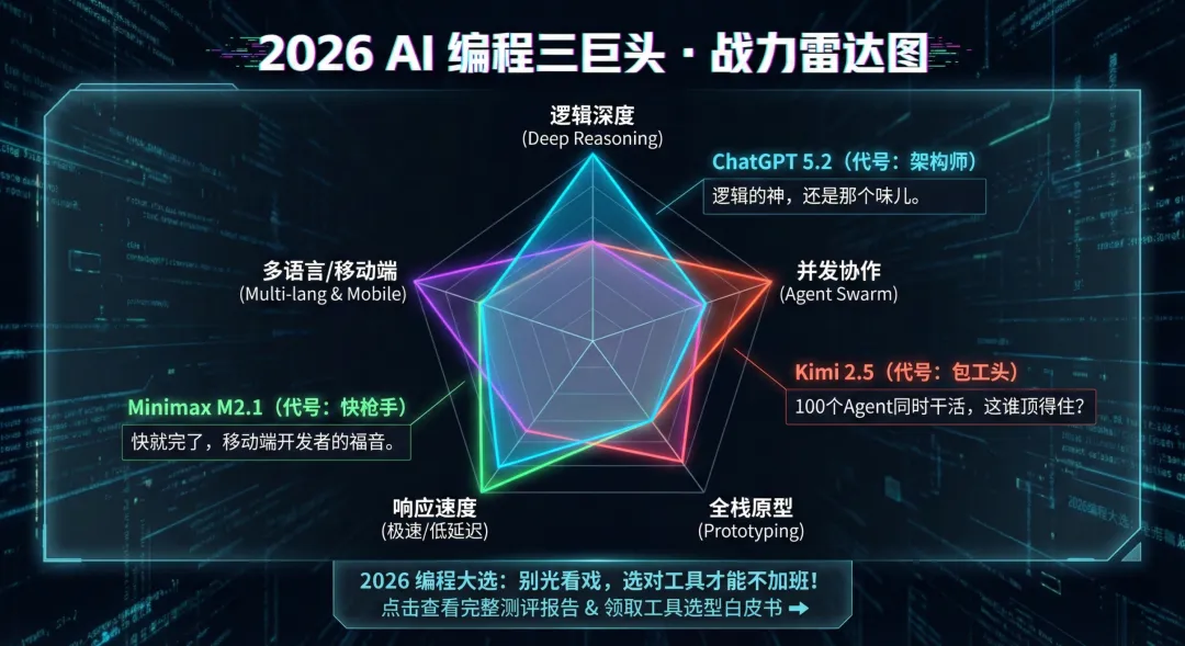 《别再手敲代码了!2026 编程大选:ChatGPT 5.2、Kimi 2.5、Minimax 谁才是最强“数字民工”?》