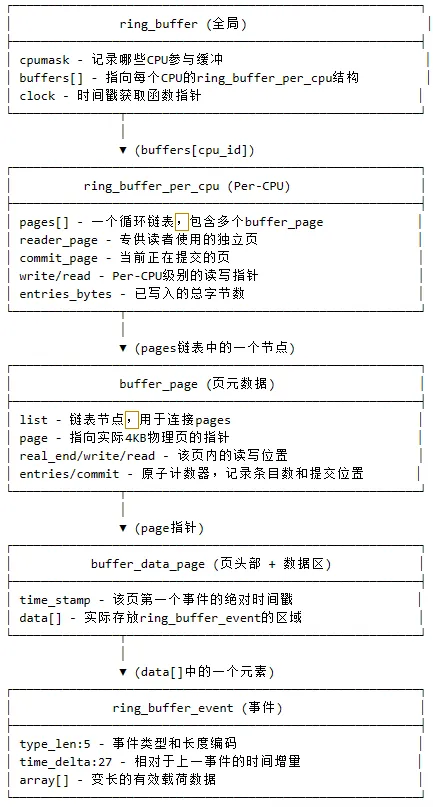 · kernel/trace/ring_buffer.c:环形缓冲区的核心逻辑实现,包含了所有关键的数据结构和操作函数。