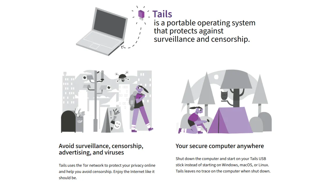 Tails(The Amnesic Incognito Live System)是基于Debian的自启动光盘或USB发行,其目标是为用户提供完整的因特网匿名功能。