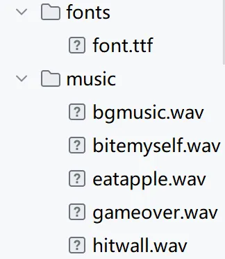 任务4:为游戏添加背景音乐和音效,如果蛇头咬到自己游戏结束,如果蛇头撞到窗口边界游戏结束