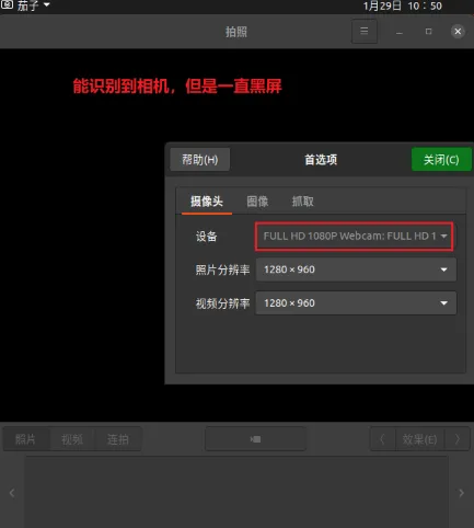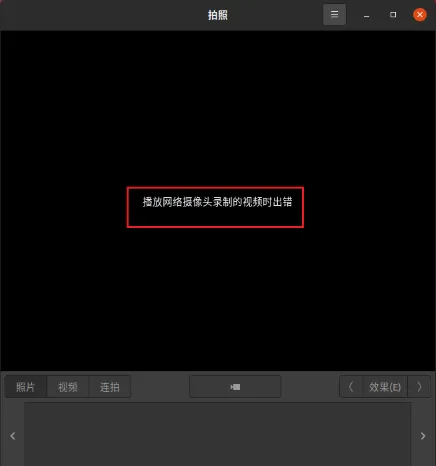 部分学者的Liunx系统中安装好茄子相机后,直接打开软件就能正常的实时读取到USB摄像头数据并视频显示,但是部分第一次安装好后打开一直黑屏并提示:播放网络摄像头录制的视频时报错,如下: