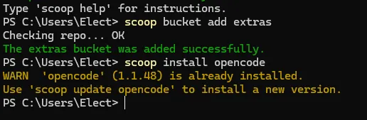 OpenCode 需要 Git 来读取和操作代码文件,先装上。