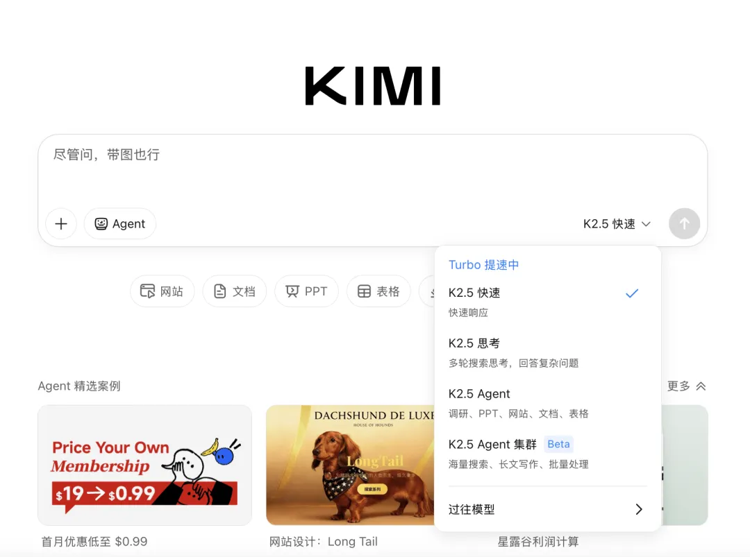 Kimi K2.5这次更新了4种使用模式,适应不同场景,不管你有啥需求,都能找到适合自己的打开方式。