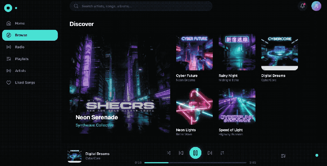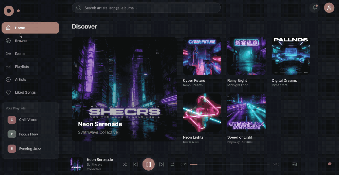 生成的网页不仅还原了原设计的功能,连按钮的hover动效、音乐播放进度条的滑动效果也都做出来了。