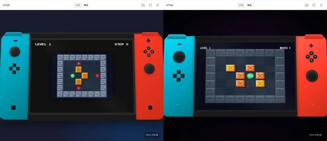 接下来,我又让K2.5 Thinking(下图左)和K2 Thinking(下图右)分别生成了一个Switch手柄: