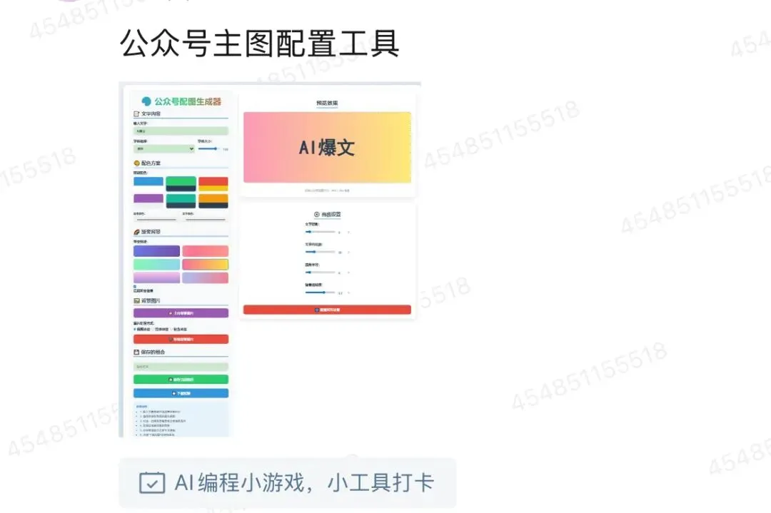 从当前的效果来看,是符合预期的。我自己又做了一个公众号主图配置的小工具。