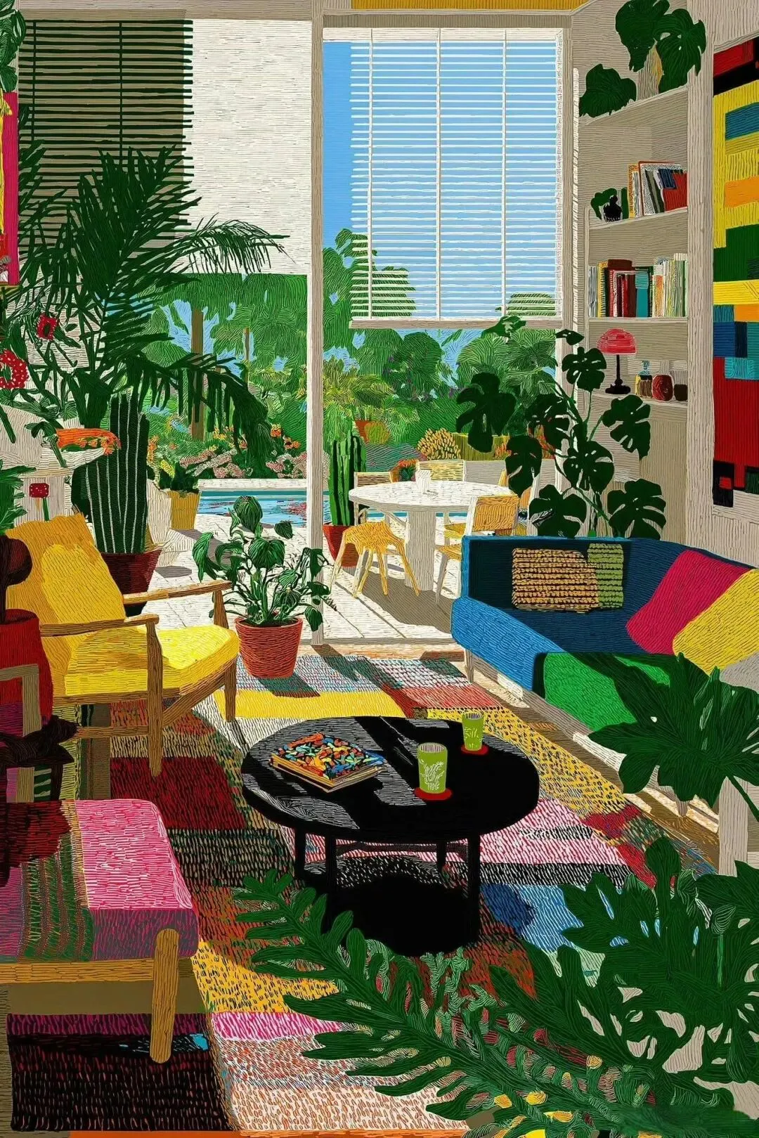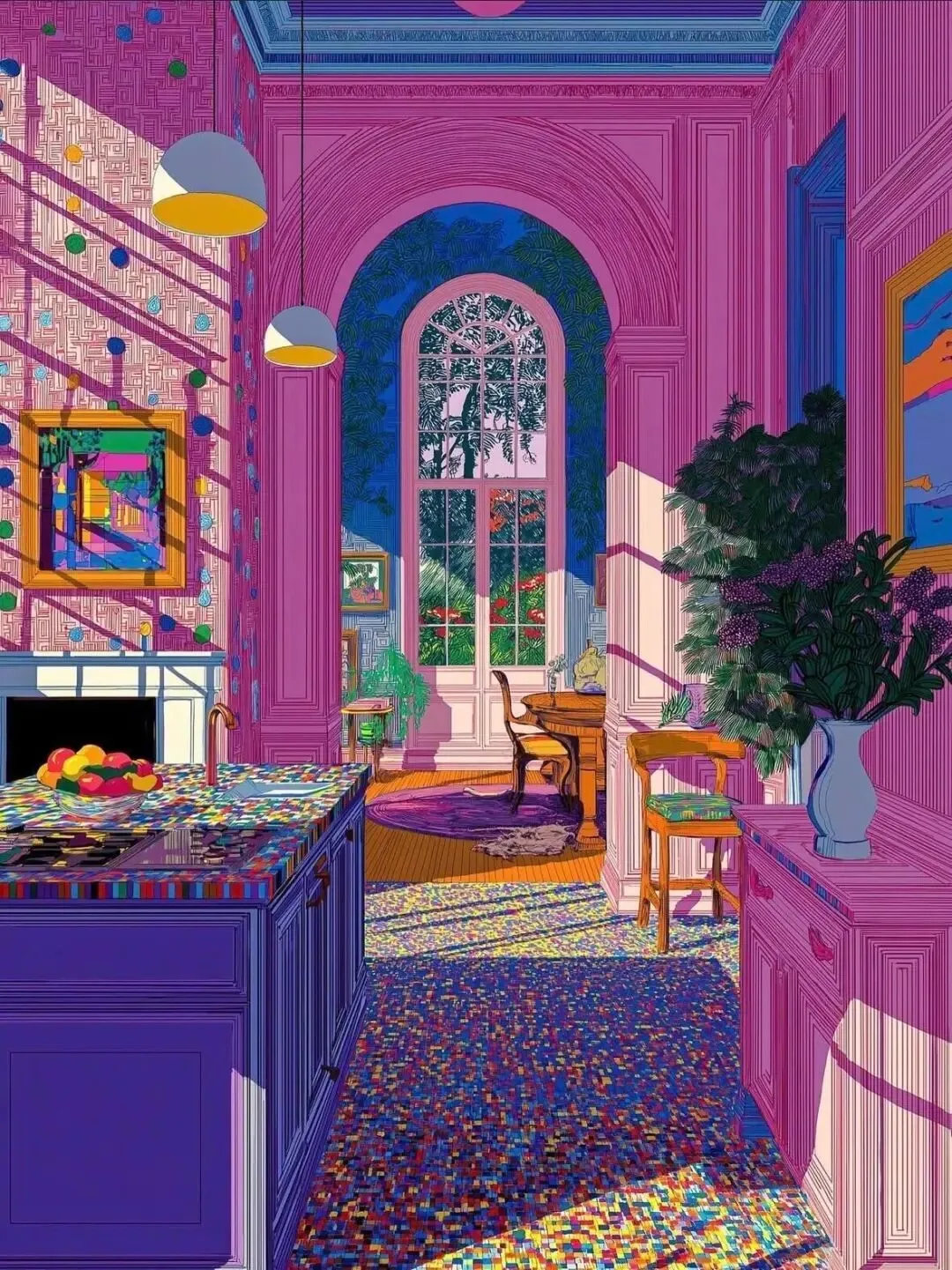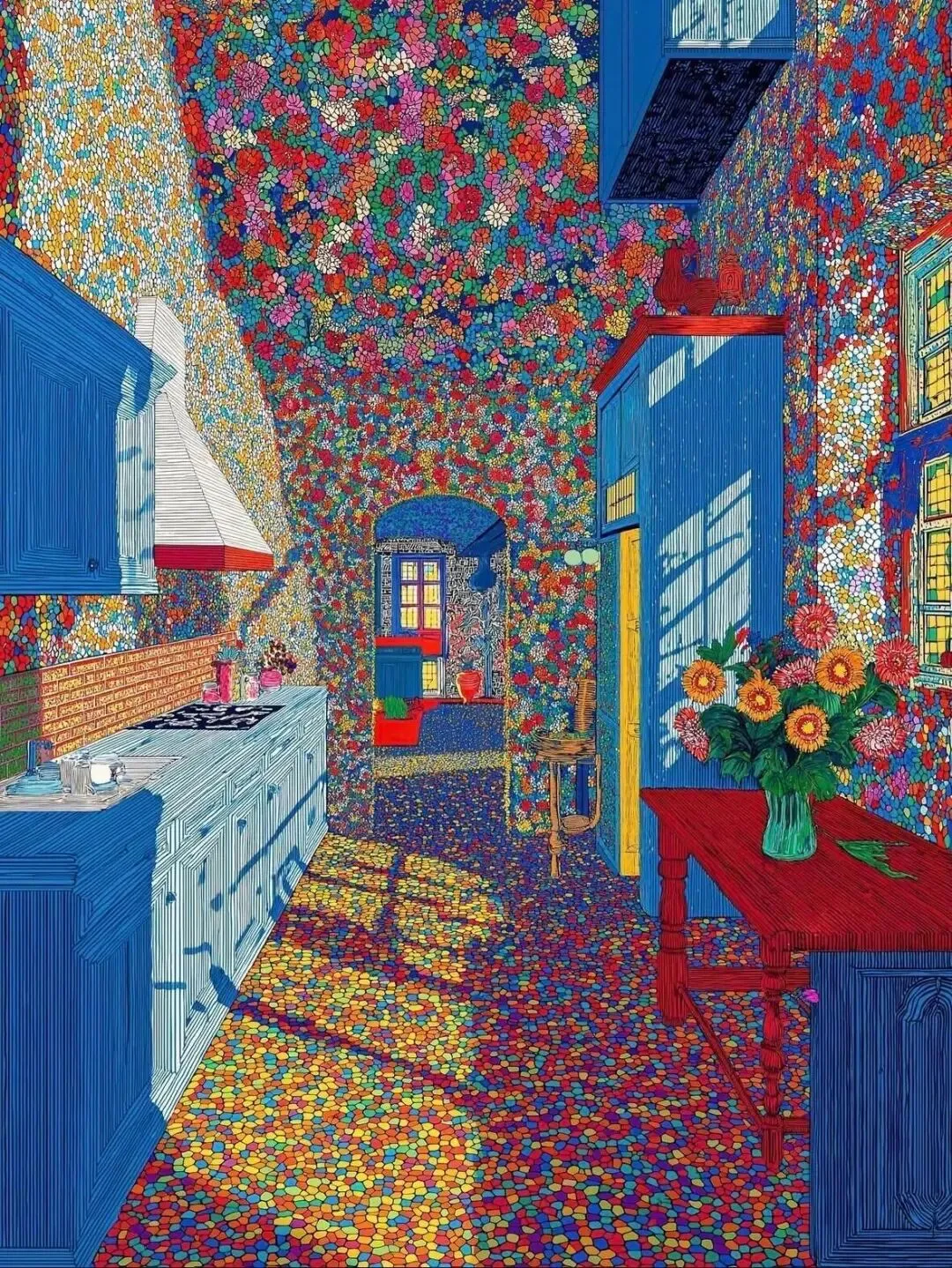 他擅长以高饱和色彩、层次化纹理、几何秩序与诗意氛围构建视觉世界,在数字精准性与手工温度间找到平衡。作品既有生成艺术的秩序感与未来感,又保留绘画性的笔触与情绪张力,打破了“数字艺术冰冷疏离”的刻板印象。