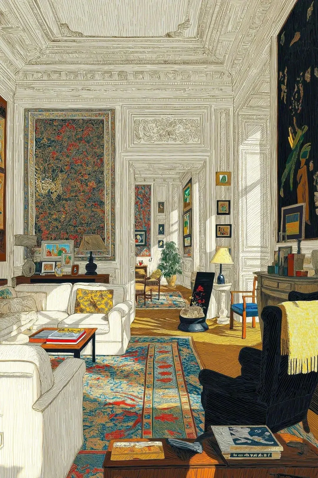 这种“手绘打底+AI生成+人工精修+顶级工艺输出”的闭环,既保留了艺术家的手迹与情感,又发挥了AI在复杂纹理、色彩迭代、风格融合上的优势,形成不可复制的个人语言。