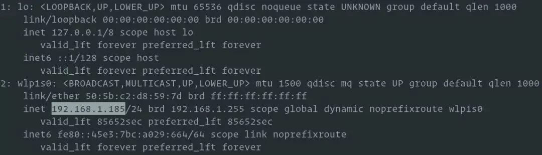 您可以通过使用命令查询网络堆栈确定系统的内部 IP 地址, 比如: ip, ifconfig 或 hostname 。