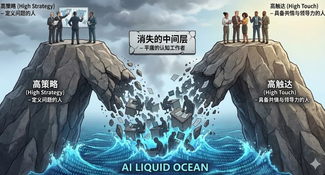 三、 职场坍塌:消失的“中间层”与M型人才曲线