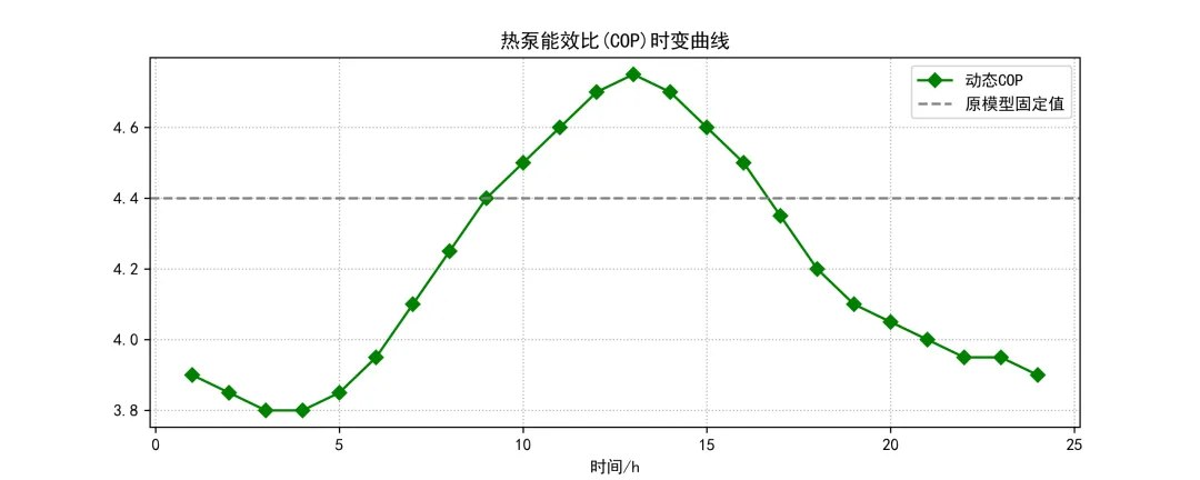 3.多能耦合精细化建模:引入热泵COP动态模型与电-热转换精细化表征,准确刻画P2H设备在不同工况下的能效特性,显著提升热电协同优化精度。