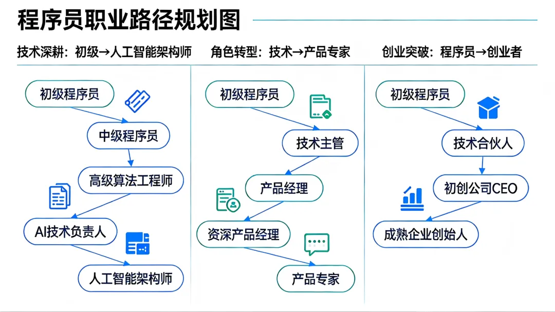 发展轨迹:程序员 → 高级工程师 → 技术专家 → AI架构师