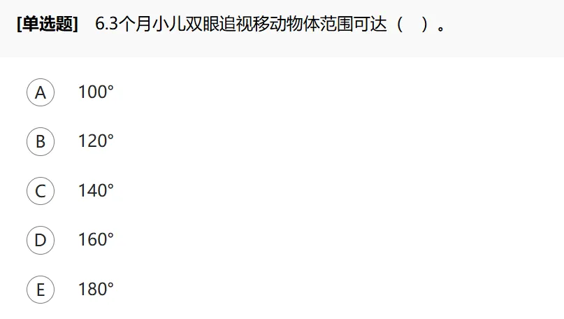 3~4个月时喜看自己的手,头眼协调较好,可随物体水平转动180°。