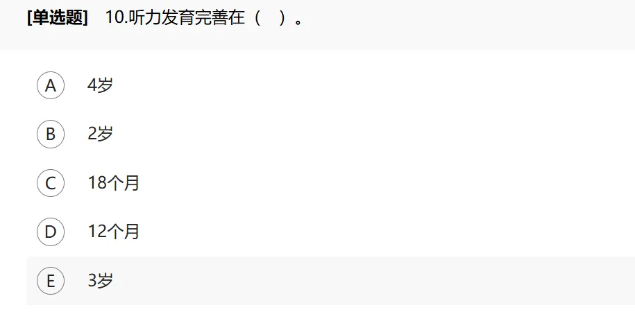 听力与儿童智能和社交能力的发育有关:①出生时小儿听力差;②生后3~7日后听觉灵敏度明显提高;③3~4个月时头可转向声源,听到悦耳声时会微笑;④7~9个月时能迅速看声源;⑤12个月时能听懂自己的名字;随年龄增长声音辨别能力逐渐提高,如18个月能区别犬吠声与汽车喇叭声;⑥2岁时能区分揉纸声与流水声;⑦3岁时能区别“咿”与“啊”等语音;⑧4岁时听觉发育已经完善。