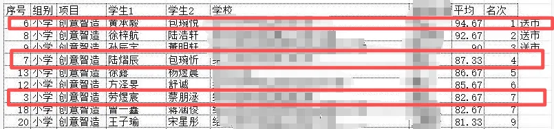 越城区赛获奖36名中,占25名,同时占越城区唯一小学组推送市赛的2名,初中组推送2人,1个市1等,3个市2等。市赛中,柯桥区推送2名1个1等,1个2等,2个3等。推送省赛。