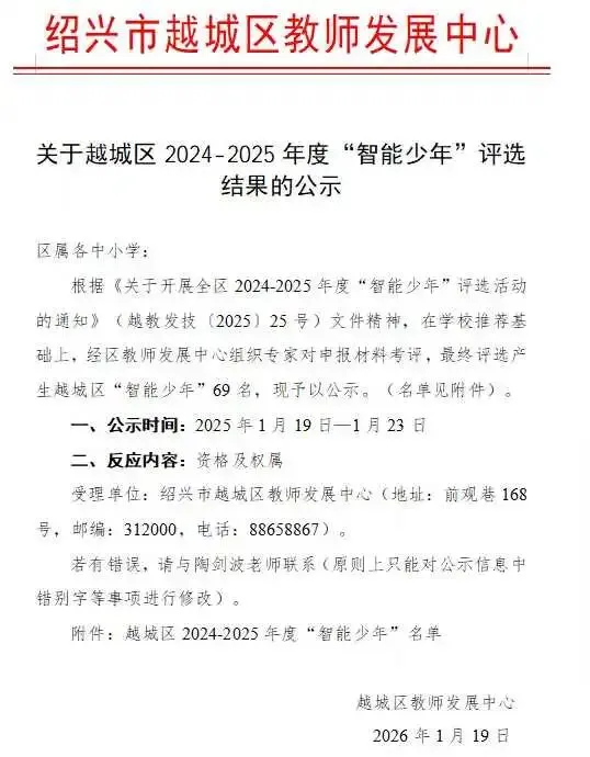 思蒂编程 7 位学员喜提越城区「智能少年」称号🏆